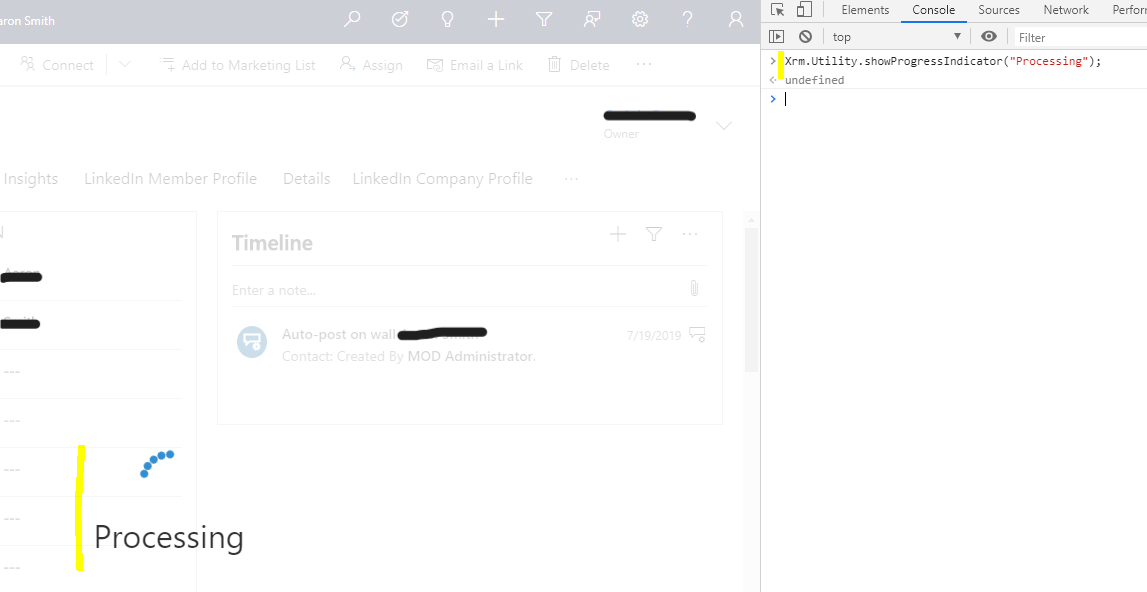 To stop this, we use Xrm.Utility.closeProgressIndicator(). On running this, we see the page is now returned to normal.