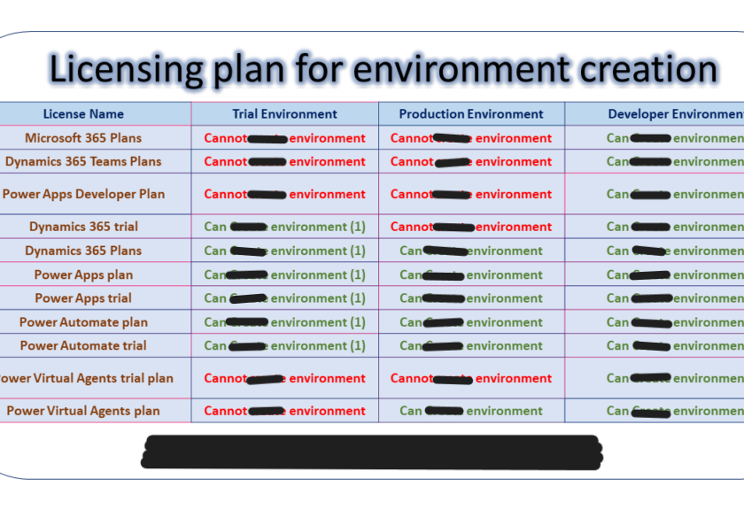 Your licensing information determines whether you can or manage environments in Power Platform. The below table signifies the access for each specific license to create new environments in Power Apps.